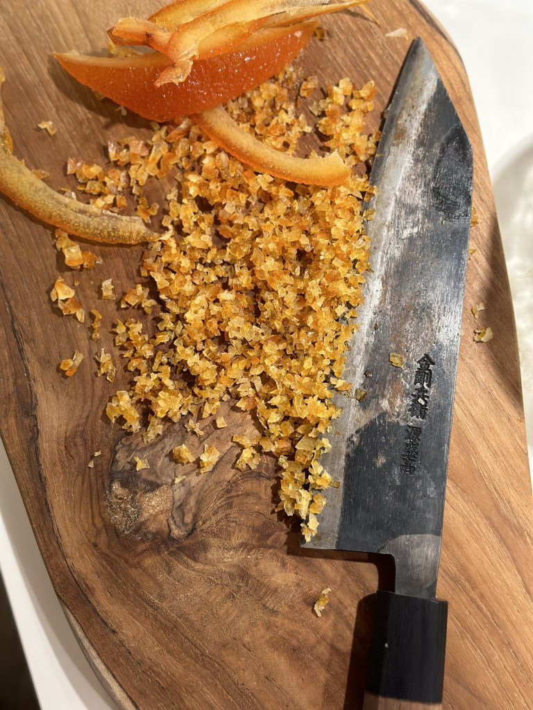 Jeg skærer ud i meget tynde skiver – de skal stadig være hele, men brug en skarp kniv.