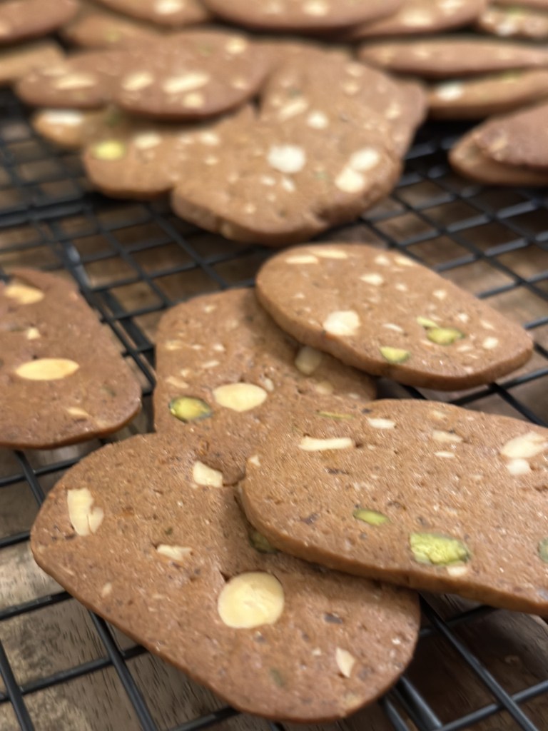 Jeg har kigget på lidt forskellige opskrifter, og tilpasset min til nedenstående. De grønne usaltede pistagenødder gør dem både flotte og velsmagende.