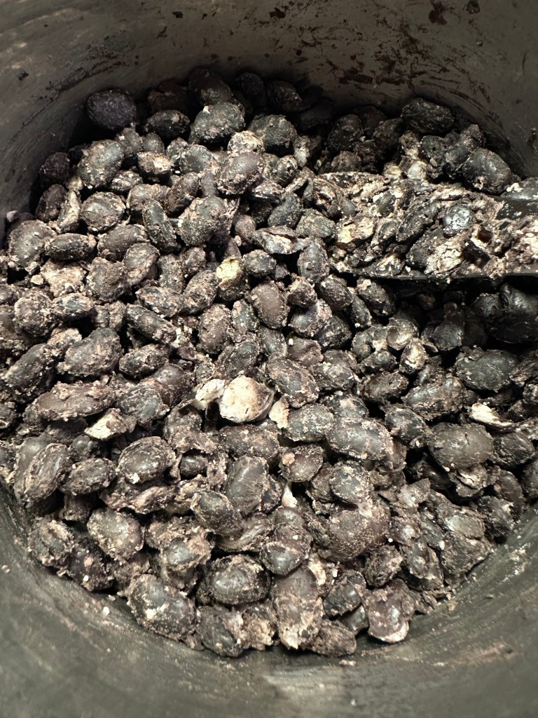 Jeg starter med at lægge bønnerne i vand aftenen før jeg skal bruge dem. På dagen koger jeg dem efter anvisningen på posen. Når de er kølet kommer de en en foodprocesser og bliver lavet til en slags “mel”.