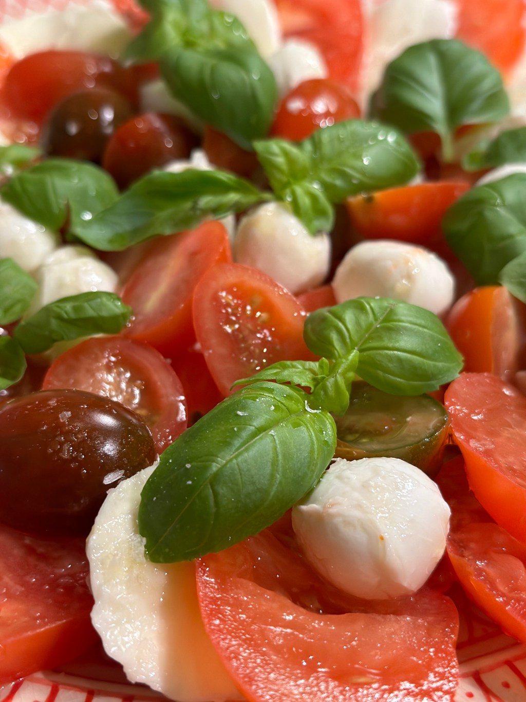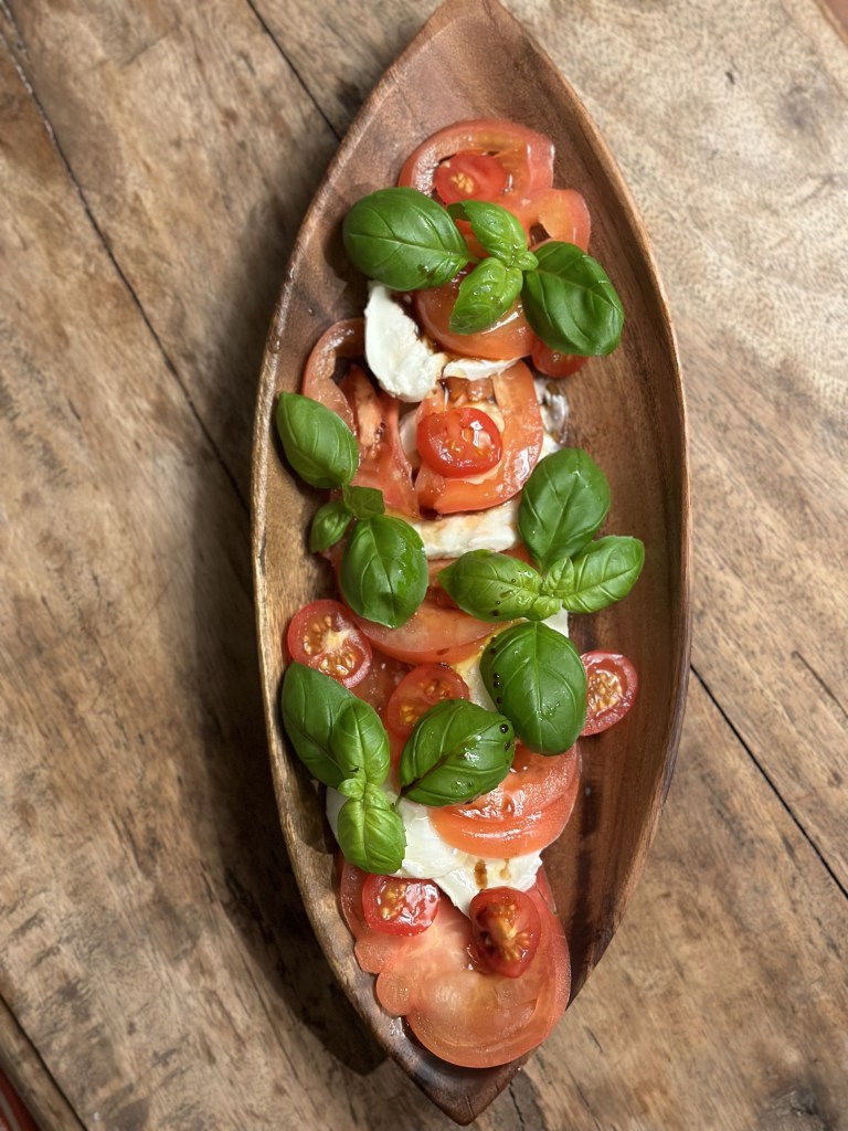 En klassisk Italiensk salat som Caprese er en antipasta, men du har svært ved at spise den uden tallerken og bestik. Som så meget andet italiensk mad, så er den supersimpel. Tomat, mozzarella og basilikum – farverne i det italienske flag. Dressingen er blot olivenolie, salt og peber. Måske lidt balsamico, hvis du ikke kan lade være.