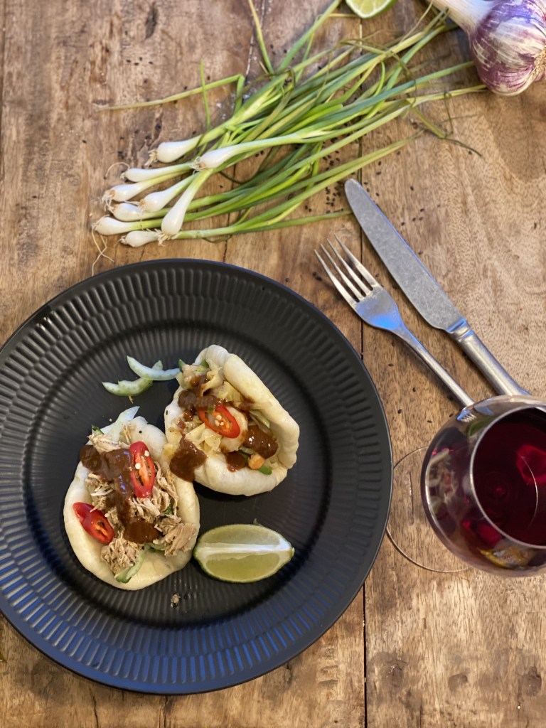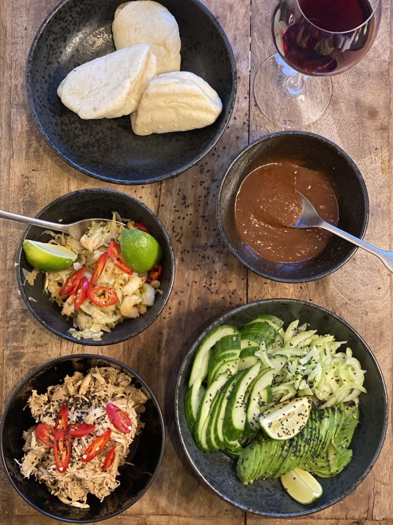 I dag står den på fyldte Bao med pulled kylling og tigerrejer – altså ikke på samme tid. Begge dele får en bund af Pak Choy salat, agurk og avokado. Dressingen er min Hoisin, som jeg lige har lavet et opslag med.