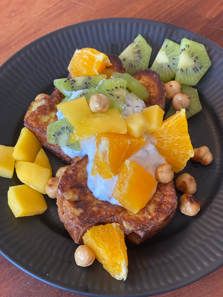 Pisk æg luftige, og tilsæt lidt mælk eller fløde. Jeg tilsætter lidt vaniljesukker efter smag. Tager alt hvidt brød – også gerne fuldkort og med kerner – vender det i massen, og steger i olie eller smør.