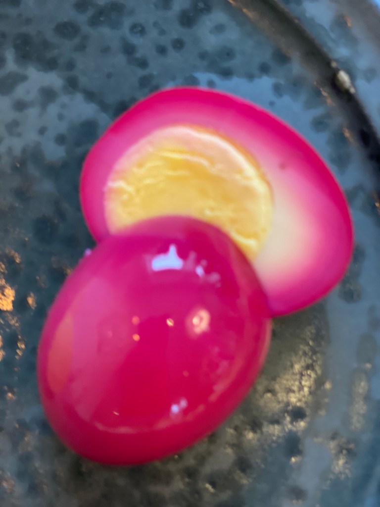 Men der er jo også spændende, at gøre det på en anden måde, så i år bliver æggene syltet og på den måde farvet.