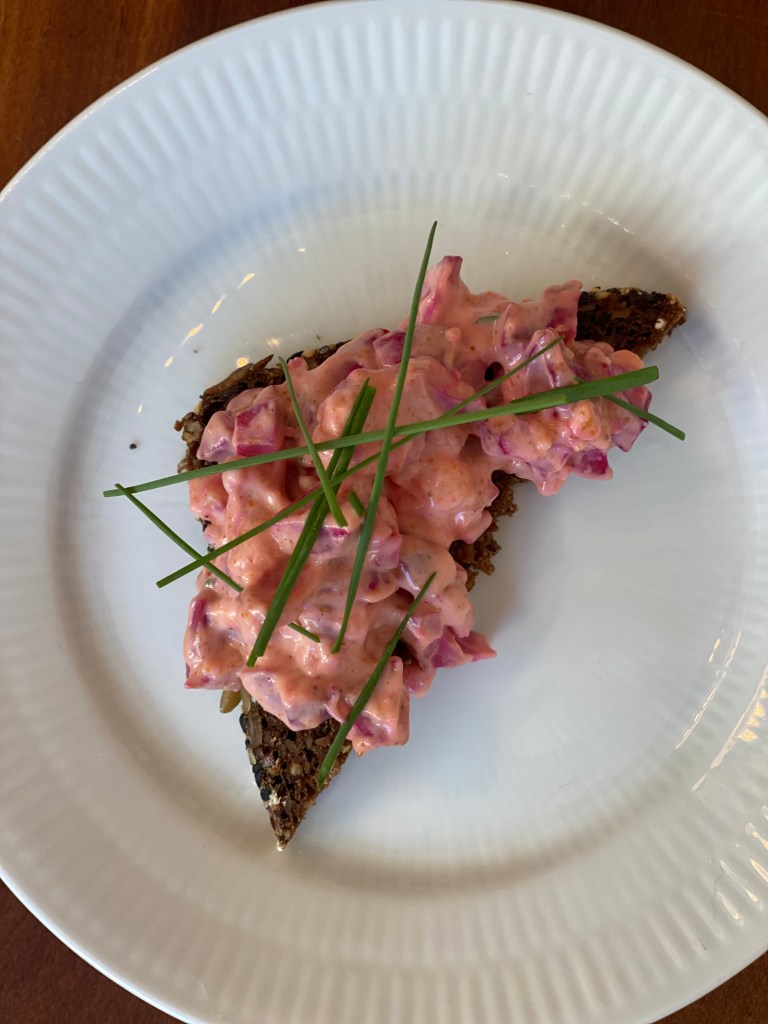 En æggemad med mayo og purløg, fungerede faktisk godt. En rød æggesalat med karry og mayo fungerede endnu bedre.
