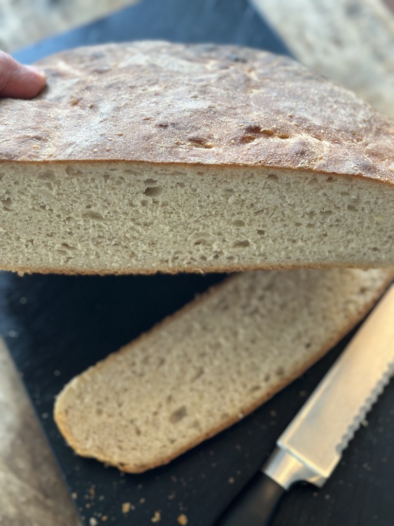 Og så er der lækkert brød. Lufthullerne bliver større, hvis man vender brødet flere gange ind mod midten.