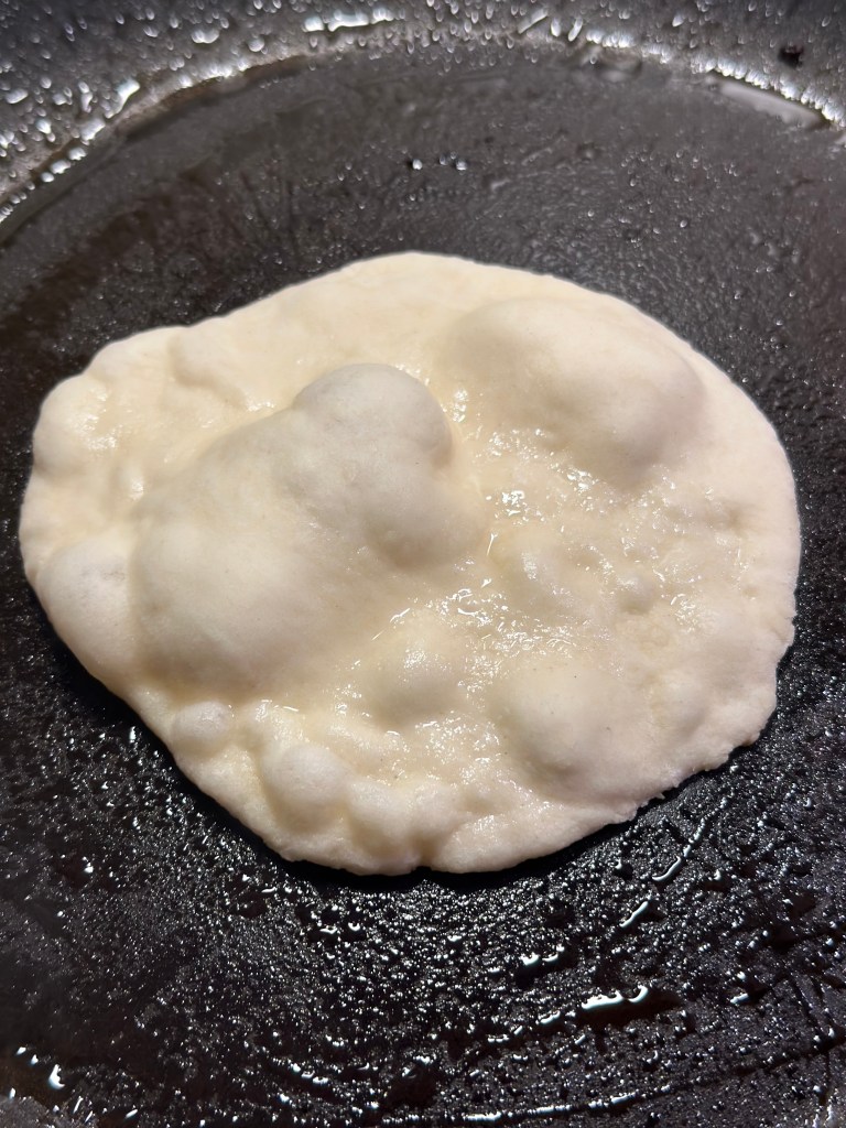 Steges på en pande i smør eller olie. Dejen buler op.