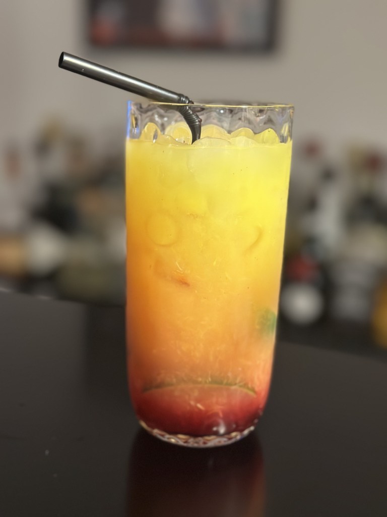 Vodka, Peachthree og appelsin juice hældes i et røreglas med is. Highball glasset fyldes med is og lime – og drinken hældes i. Toppes med Tranebær siruppen.