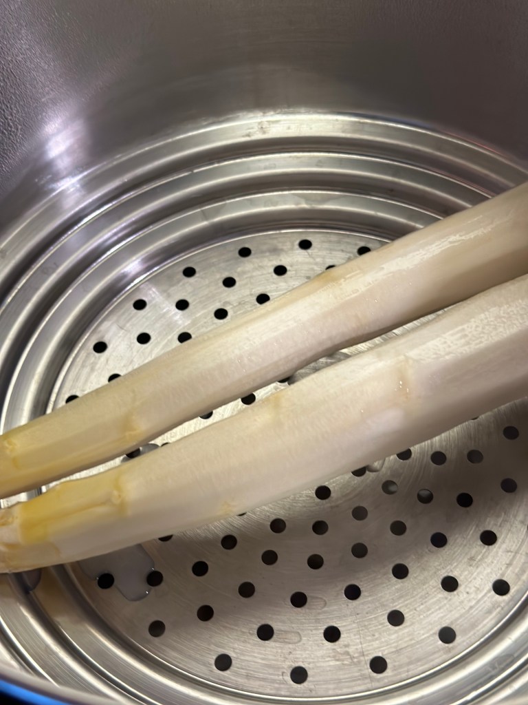 Her har jeg smørstegt en loin, som jeg blot har krudret med paprika, salt og peber. Jeg har lavet hvide asparges, nye kartofler og en skøn citronsauce (blot opbagt og tilsat friskpresse citronsaft).