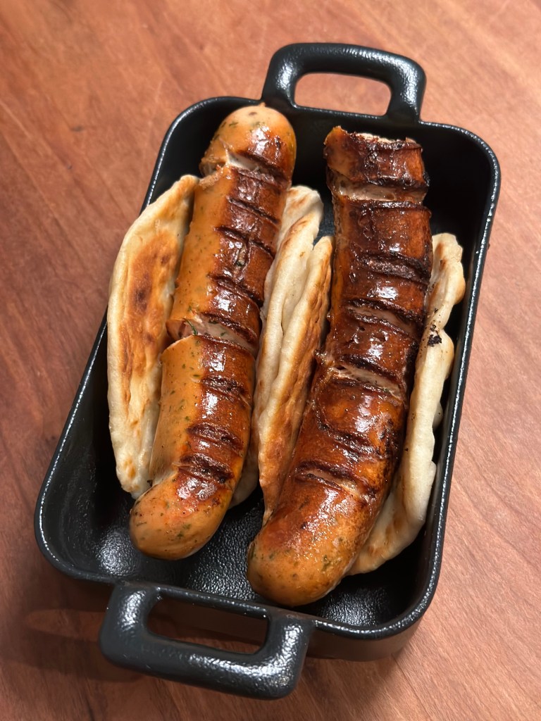 Kyllingpølser er som udgangspunkt en tam oplevelse, fordi de smager af for lidt. Jeg har fundet 2 typer, som jeg kan anbefale. Den ene er fra Gråsten fjerkræ, som har lavet en frankfurter med tømt og ramsløg. Den anden er fra Slagter Lund.