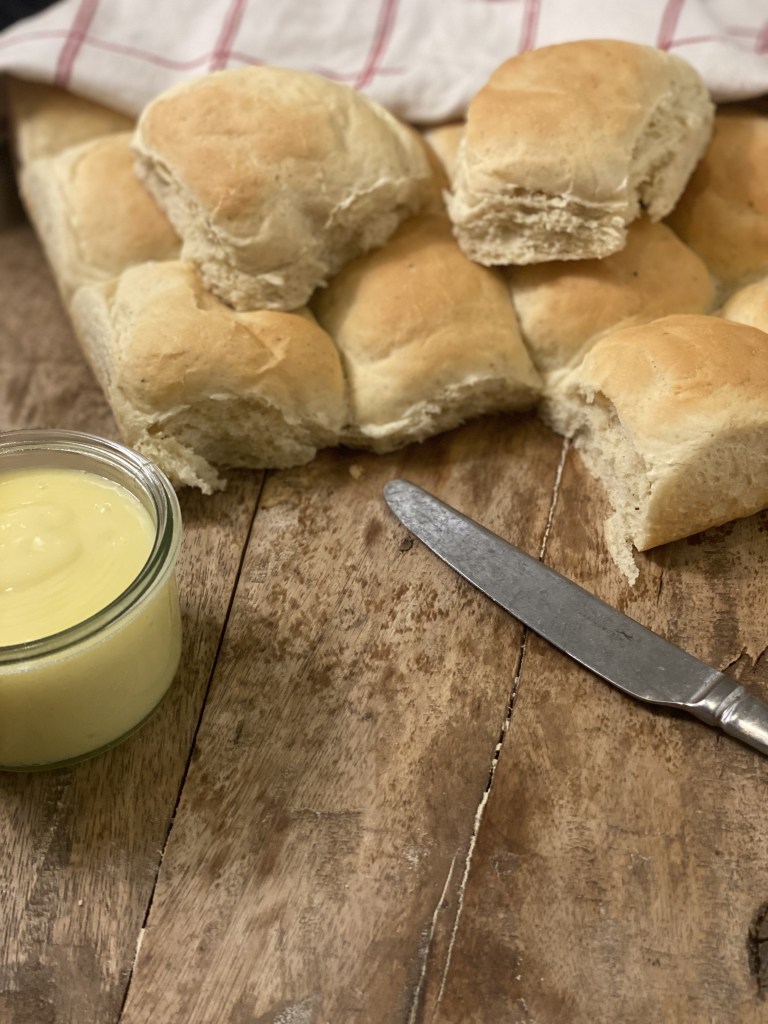 Typisk med smør på, men jeg prøv også min hjemmelavede lemoncurd.