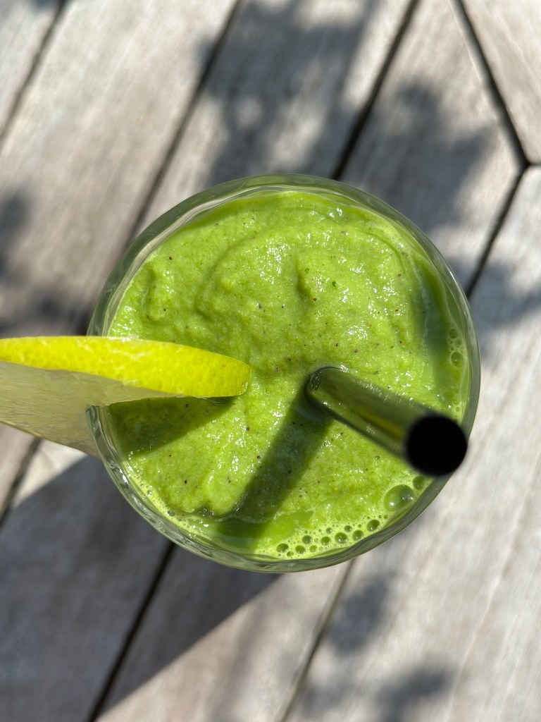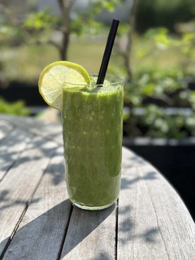 Grønne grøntsager er generelt super sunde. Fælles for grønne grøntsager er, at de indeholder A-vitaminer, B1- Vitaminer (som er godt for energi stofskiftet), calcium, folat og jern. De seneste anbefalinger er, at 100 gram af de 600 gram som det er godt at spise hver dag, meget gerne må være grønne – og i sær Broccoli og Spinat, som der er med i denne smoothie.