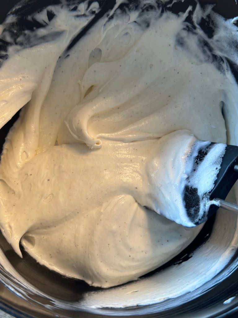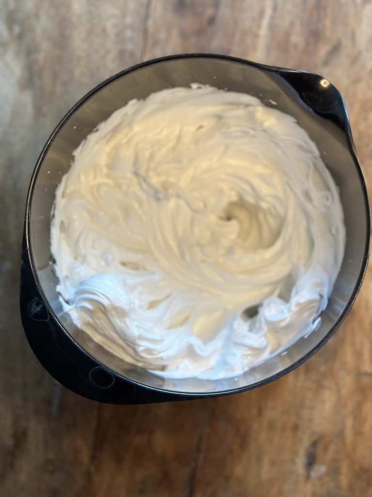 Æggehvider piskes stive for sig. Æggeblommer, sukker og vanilije piskes for sig, således det bliver stift. Mascarpone piskes smidigt og blandes sammen med æggesnapsen. Herefter vendes æggehvider i, men vær opmærkson på, at du nok kun skal bruge 2/3 af den, da creme ikke skal være for tynd.