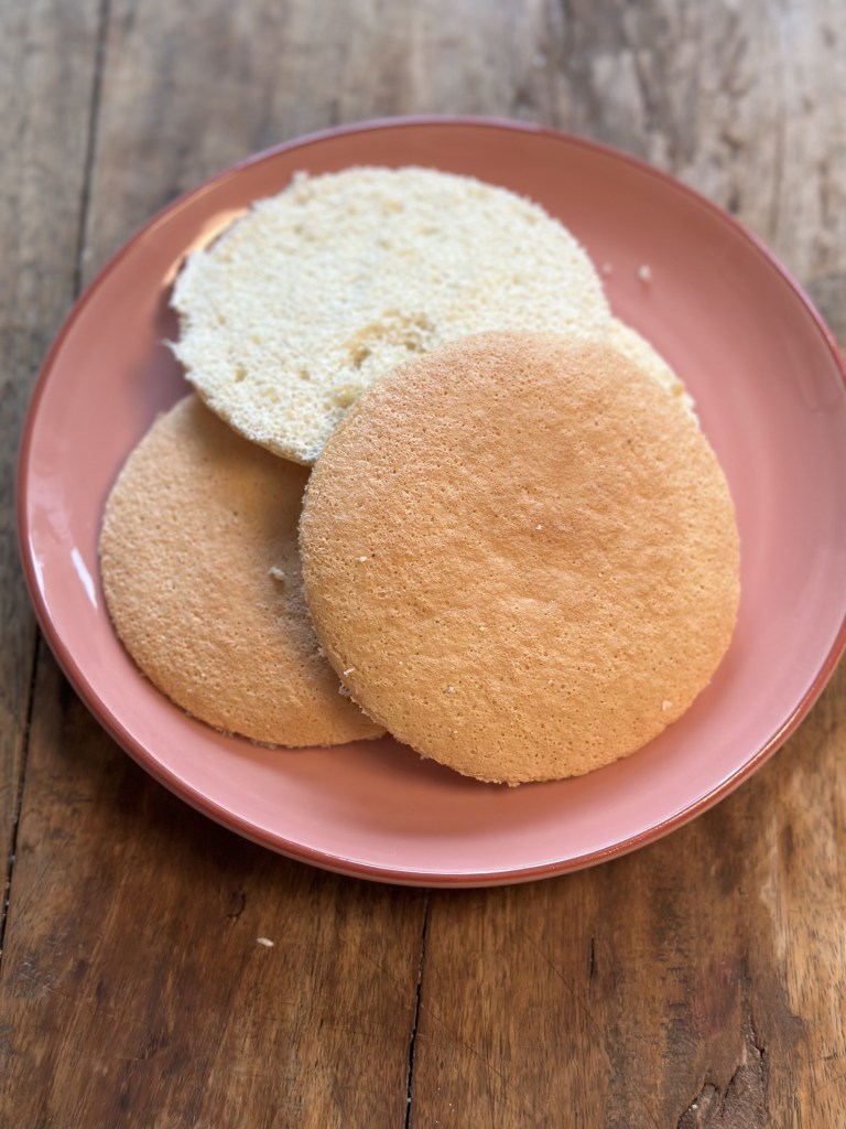 Æggeblommer og halvdelen af sukkeret piskes stivt sammen med vaniljen. Tilsæt derefter melet (brug en si). Æggehvider og den anden del sukker piskes sammen til det er stift. De to dele vendes forsigtigt sammen, så luften forbliver. Brug en sprøjtepose og i denne har jeg lavet som mini lagkagebunde, men du kan også lave som “ladyfingers”. 5-6 minutter i en forvarmet ovn på 200 grader i midten. Hold øje med den det sidste minut. Forvent de sidder godt fast på bagepapiret.