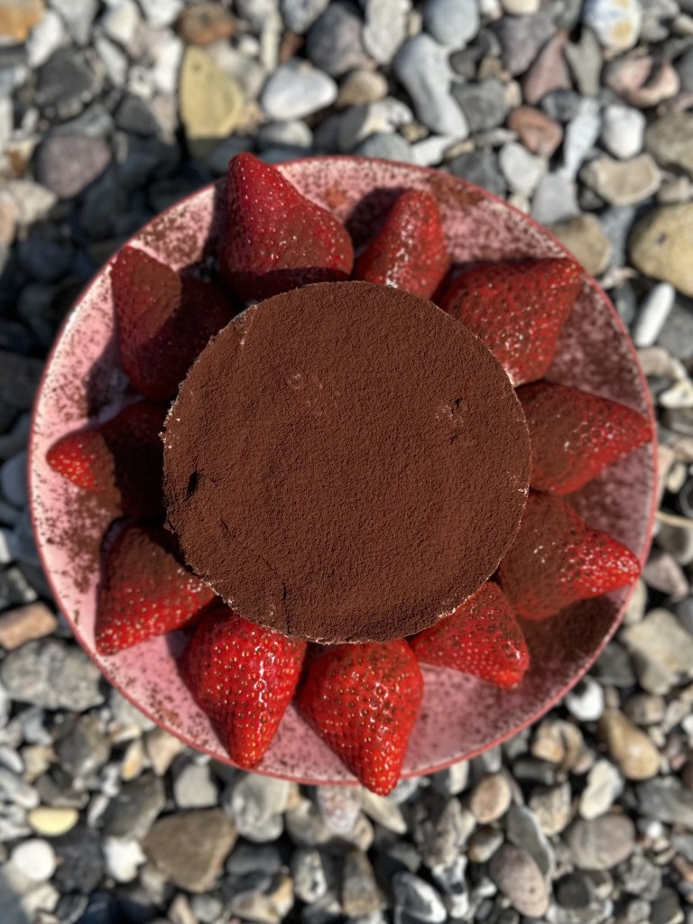 Herefter på køl (gerne 12 timer), og først når den serveres drysses med en virkelig god kakao.
