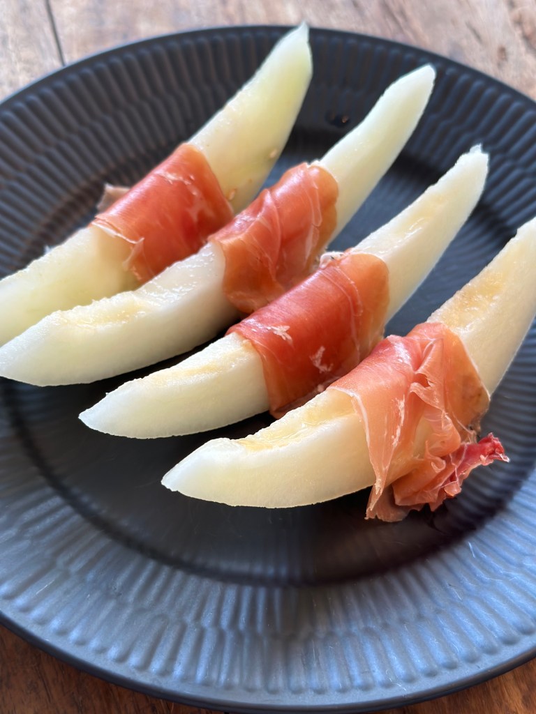 Den kom jo til Danmark med “grissefesterne”, men om den er særlig spansk, tror jeg ikke. Men Honningmelonen er supersund – ikke mange kalorier og skøn om sommeren. Og samme med Serrano har man noget virkelig lækkert. Jeg har taget den med, fordi den passer godt til en spansk tapas. Se min opskrift her !