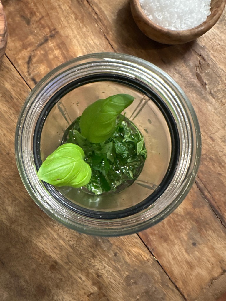Læg krydderurterne du har valgt i en mini hakker eller mini blender. Tilsæt olie og blend til du har en urteolie. Denne tilsætter du tilsidst i din mayonnaise. Du kan sagtens tilføje hvidløg i denne blanding også.