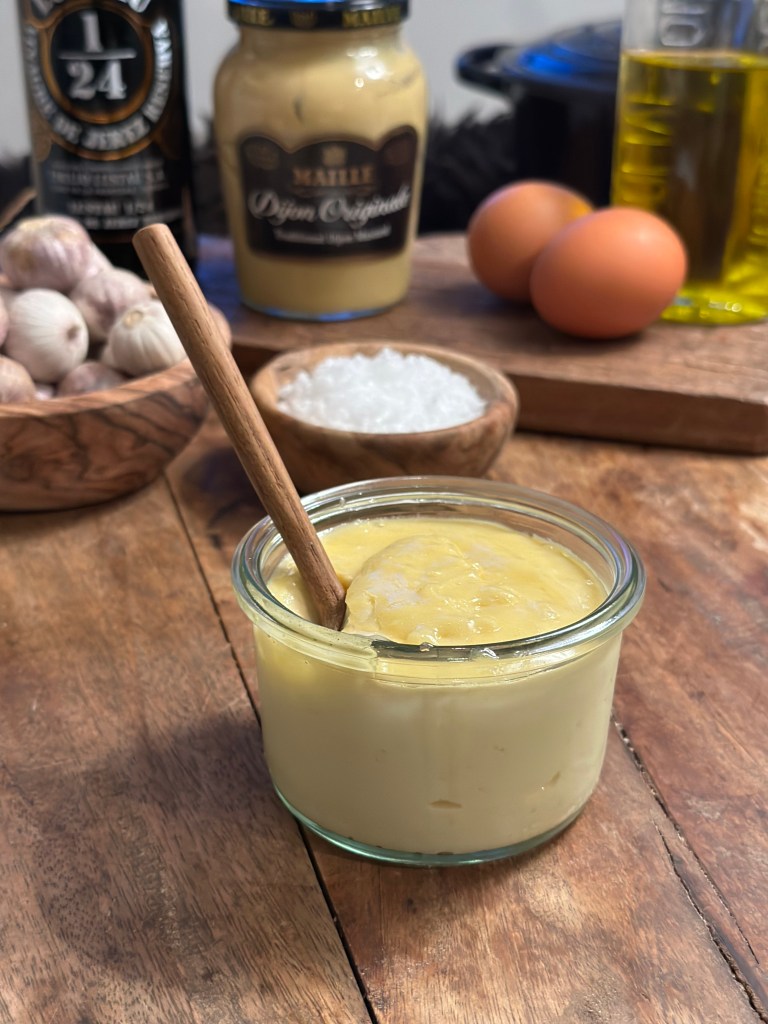 Navnet Aioli kommer af Hvidløg som på Spansk hedder “Ajo” og “Oliven”… Eller “Ail” på Fransk er Oliven… I Spanien siger de “Alioli”, men da flest kender den som Aioli, så den betegnelse bruger jeg her.
