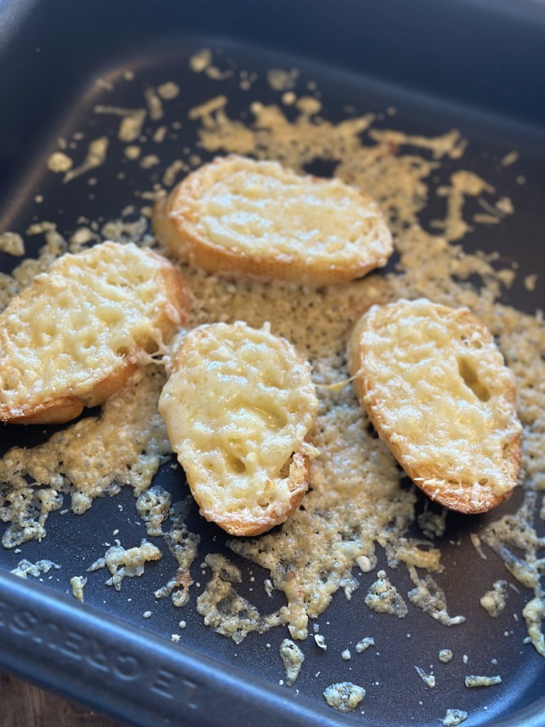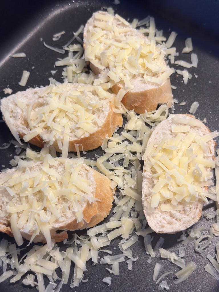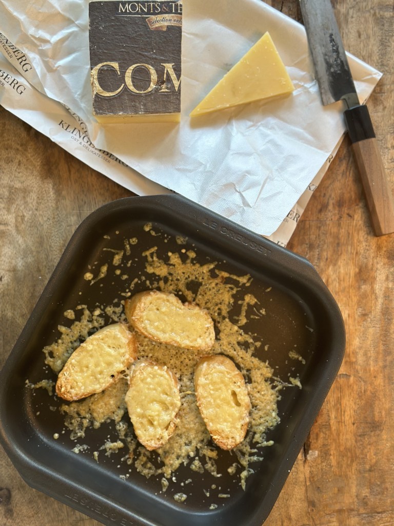 Fransk baguette med Comté på toppen – gratineret i ovnen.