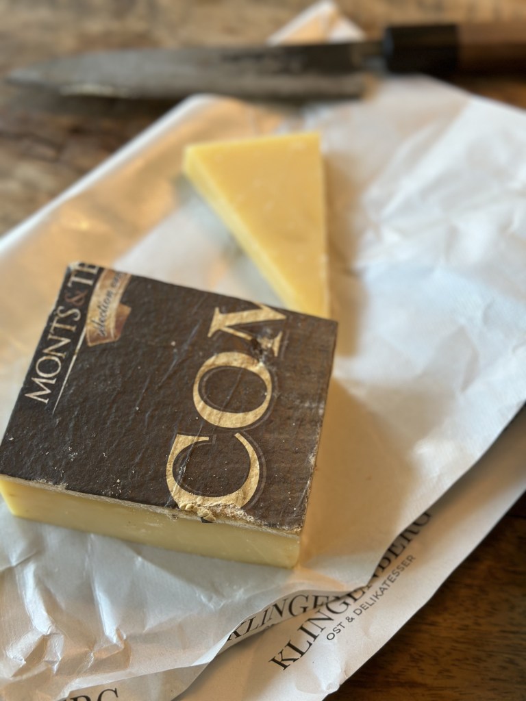 Der skal 450 liter mælk til 40 kilo Comté ost. Den kommer fra Franche Comté regionen som ligger i det midt østlige del af Frankrig og grænser op til Schweiz – og osten ligner og smager også rigtig meget af den klassisk Gruyère ost. Den er tilbage fra 1200 tallet og pga. den store mængde at mælk, skete produktionen fra den tidligere start ved at de lokale bønder slog sig sammen og både køer, produktion af mælk og ost. Den normale Comté lagres i mellem 12 og 24 måneder.