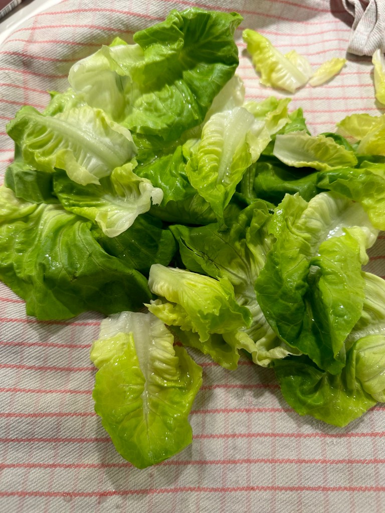 Romaine (Vi kalder den det samme): En salat med lange, mørkegrønne blade og en let pebret smag.