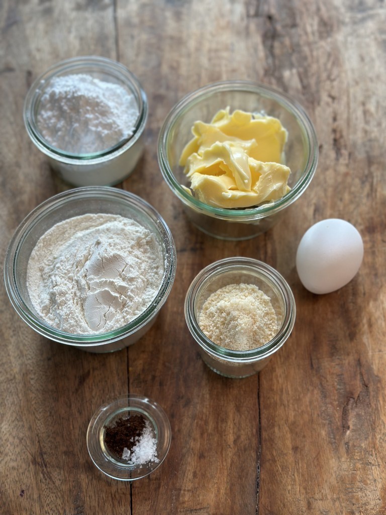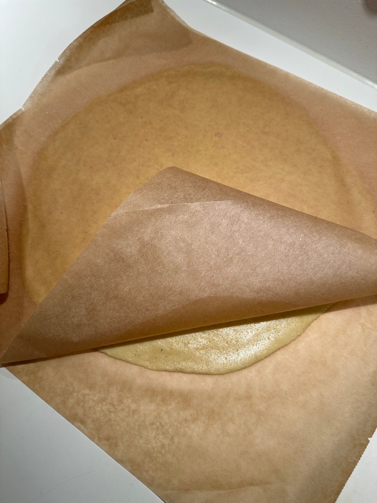 Alle ingredienser undtagen 100 gram hvedemel, hældes i en skål i og røres godt sammen – gerne med en røremaskine. Når dejen er samlet, tilsættes den resterende mængde mel. Dejen er relativ knæ, men det gør den blot nemmere at rulle ud imellem 2 stykker bagepapir i en størrelse som passer med din form. Lægges på køl i en times tid, men kan sagtens laves en dag i forvejen. Den skal dog ud fra køl, lidt inden du skal bruge den.