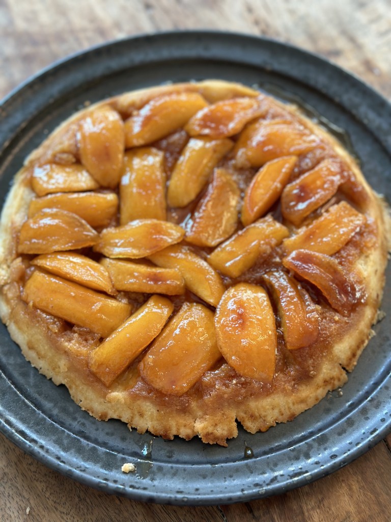 Tarte Tatin blev skabt ved et tilfælde på Hôtel Tatin i Lamotte-Beuvron, som ligger lidt syd for Paris. Vi skal tilbage til 1880, hvor hotellet var drevet af de to Tatin-søstre, Stéphanie og Caroline Tatin. Stéphanie havde haft en travl dag, og da hun skulle lave æbletærte til sine gæster, begyndte karamellen at lugte brændt. For at “slukke brænden” valgte hun hurtigt at lægge tærtedejen oven på, og sætte panden i ovnen, således den hurtigt kunne blive bagt. Men hun var jo nød til at tjekke om den var brændt på, så da hun vendte den om, var resultatet så flot, at den fremover blev lavet sådan. Tærten blev en signaturret fra Hôtel Tatin.