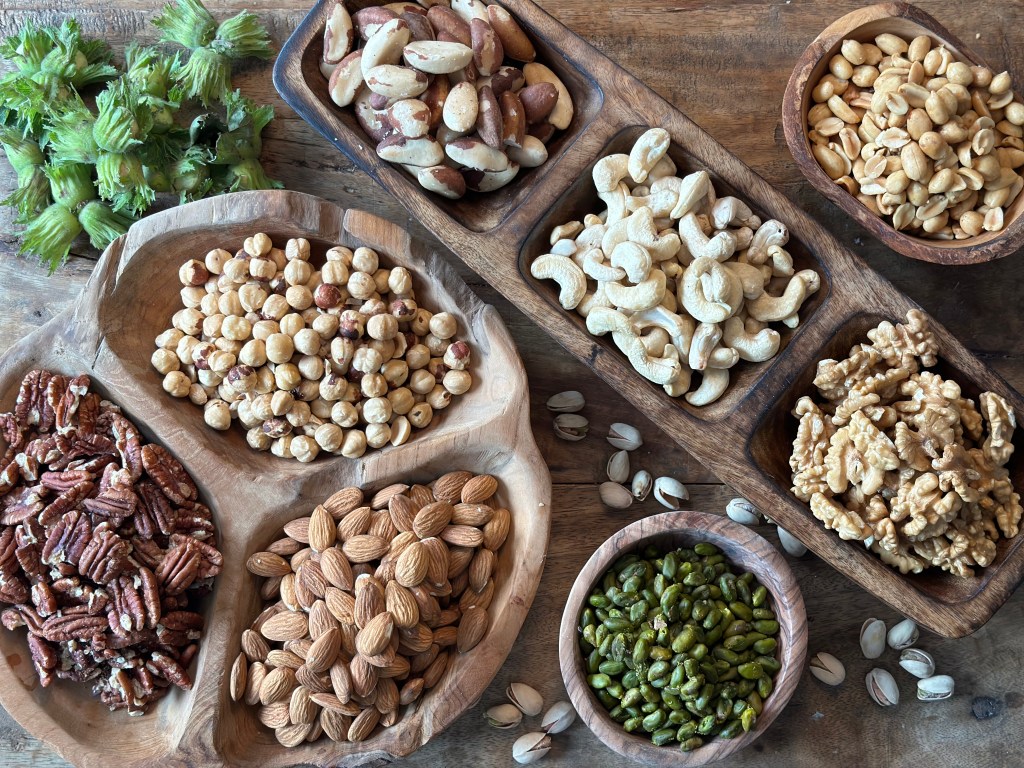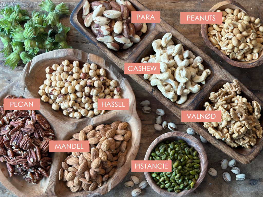 Nedenstående nødder har jeg altid på lager. Jeg køber altid den bedste kvalitet, og bruger dem til både müsli, kager, salater og mad.