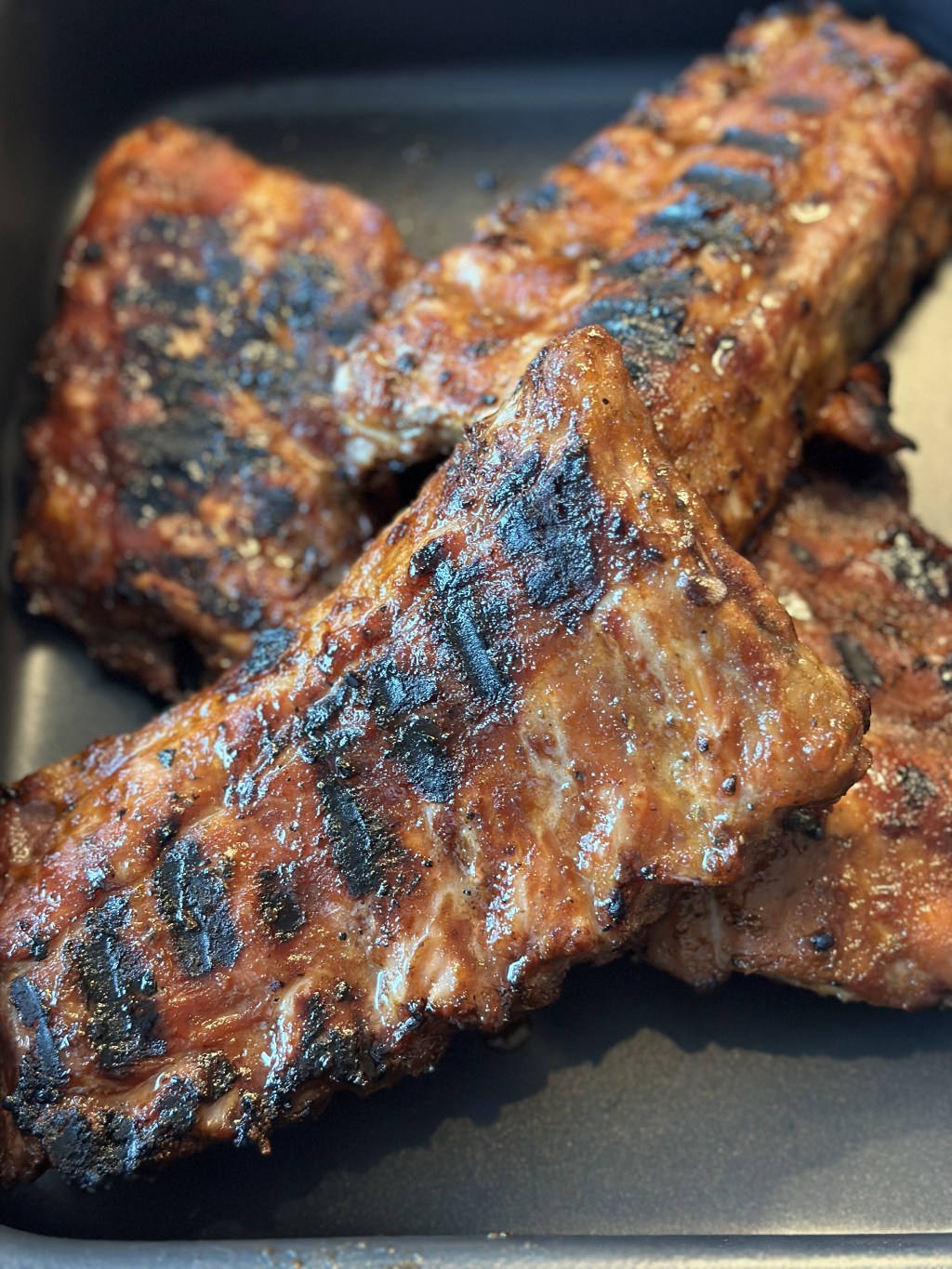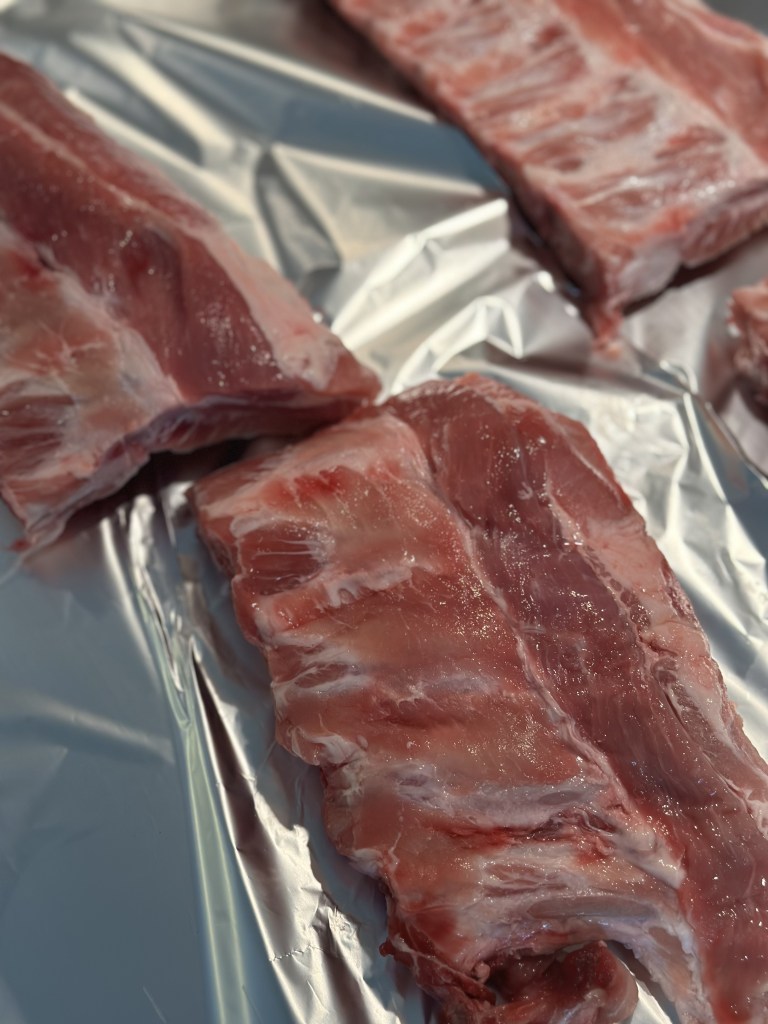 Spareribs har alle noget med grisens ribben at gøre. Det er altsammen fyldt med sener og bindevæv, og hvis man skal gøre det mørt og lækkert, er man nød til at langtidsstege. Bindevæv og sener bliver “opløst” ved temperaturer mellem 54 og 68 grader. Man skal helst ikke op på 100 grader, så temperatur styring er nødvendigt. Spareribs skal typisk have 4-6 timer. Enten ved inddirekte varme på en grill eller i ovn uden varmluft. Jeg knubber krydderierne ind i kødet på begge sider og pakker det ind i sølvpapir for at holde på saften.
