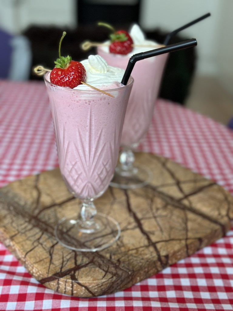 Laktosefri og hjemmelavet jordbær millshake er super nem at lave – hvis du allerede har vaniljeisen.