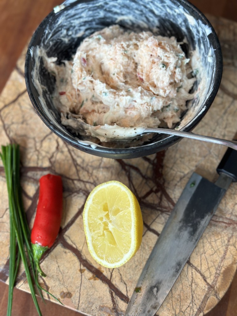 Jeg køber min varmrøget laks hos fiskehandleren, men du kan også bruge den som ligger i supermarkedet.