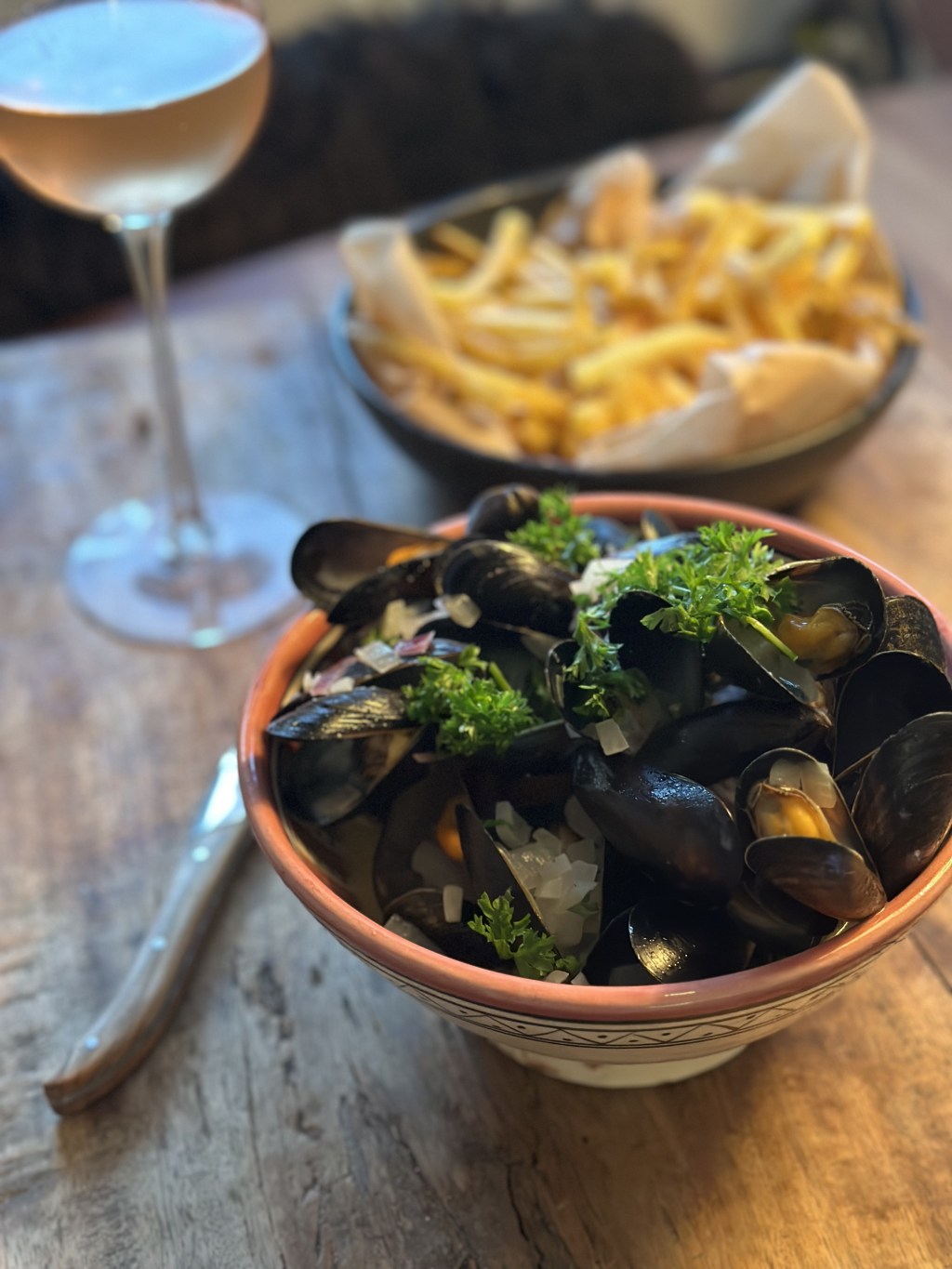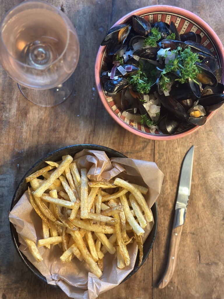 Moules Frites er desværre ikke fransk, selvom den lyder sådan, så stammer den oprindelig fra Belgium. Den er dog siden blevet en del af den kulinariske tradition i Frankrig og er en klassiker på enhver fransk bistro.