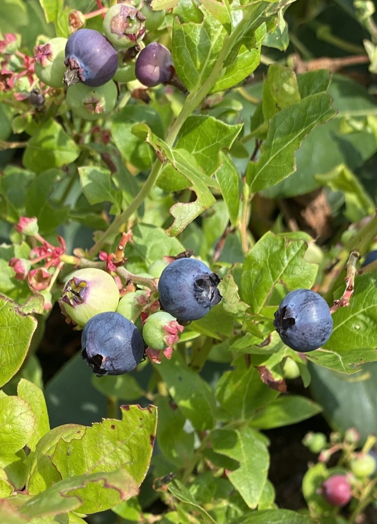 Jeg har plantet to blåbær buske, en “han” og en “hun” for de skal bestøve hinanden. De skal jo har surbundsjord, hvorfor de nemt kan stå ved siden rododendron – og klæder også hinanden.
