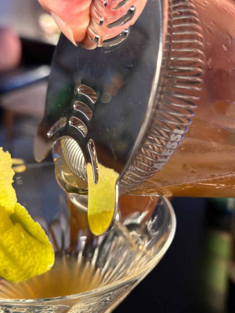Alle ingredienser sammen med nogle isklumper kommes i en shaker. Hældes op i et glas igennem en stainer og pyntes med en citron.