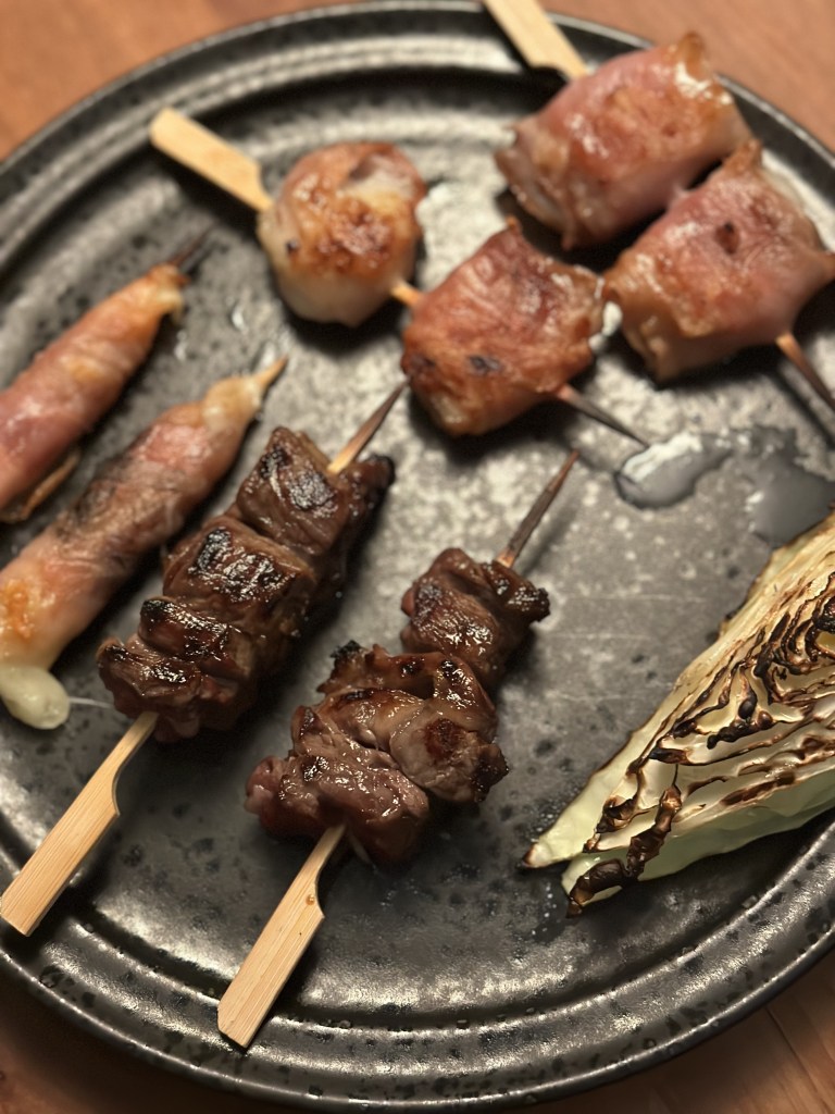 Navnet yakitori betyder ”grillet fugl” og referer til kylling. Yakitori bruges ofte bredt om japanske sticks, men i virkeligheden opdeles de i Yakitori som er med kylling og Kushiyaki som er alle de andre. Eller endnu mere præcist – alle Japanske sticks hedder Kushiyaki – også dem med kylling, som man så blot kalder Yakitori. Og så er vi forvirret.