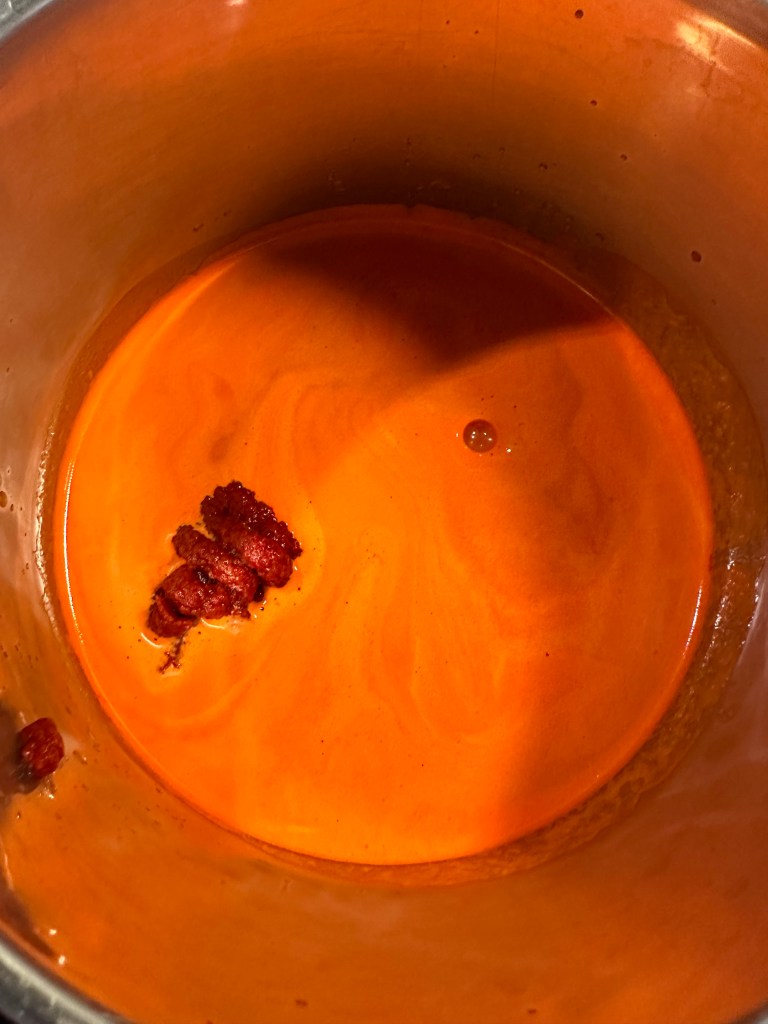 Jeg tilsætter fiskeolie og tomatpure for dels at højne umami effekten, men også fordi jeg synes den bliver bedre med disse elementer. Den originale er uden.