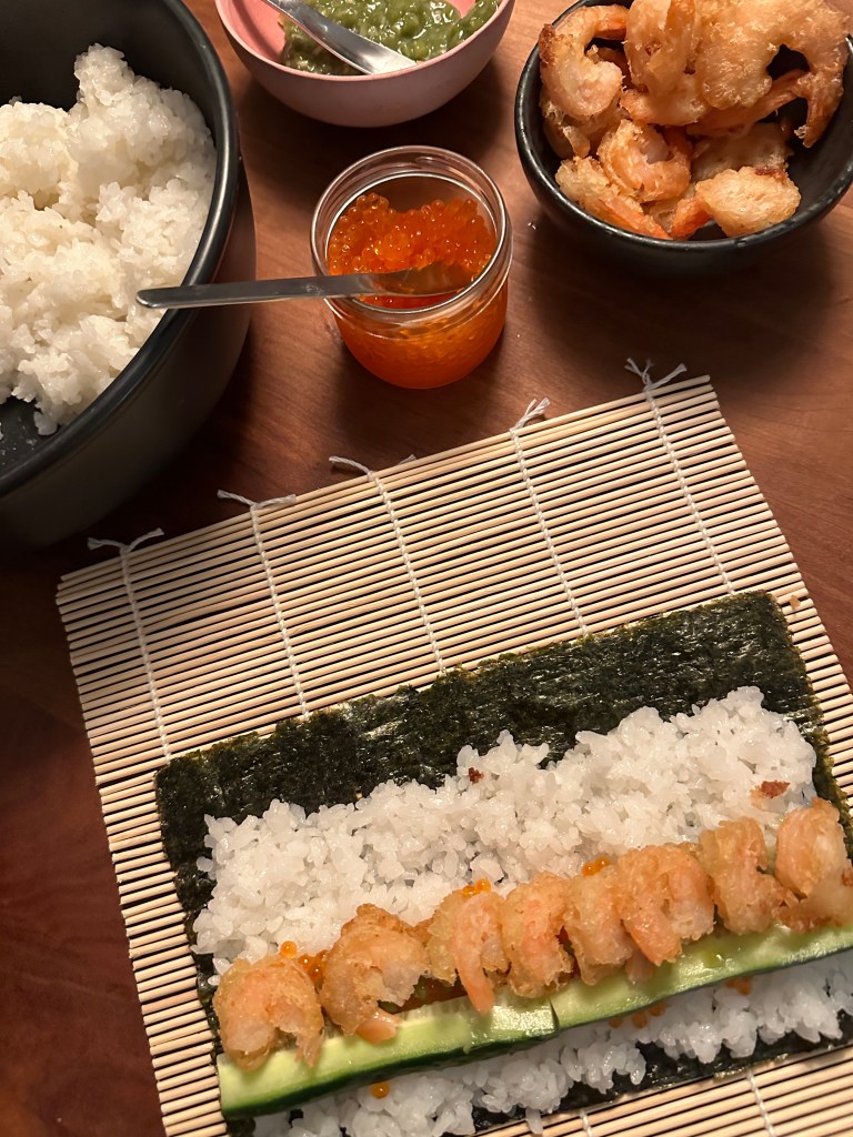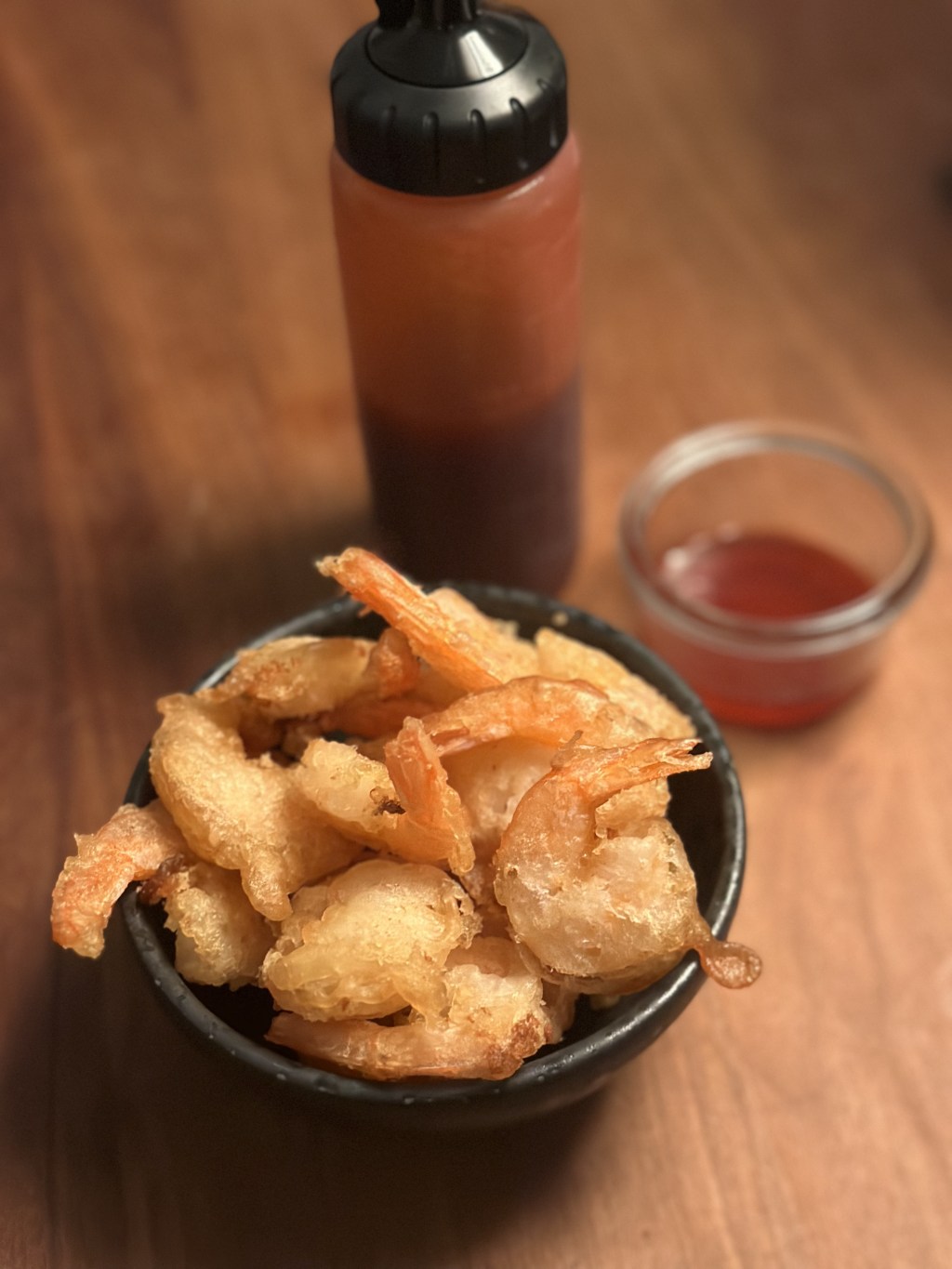 Her laver jeg tempura rejer, som kan spises som de er, som en snack eller i sushi.