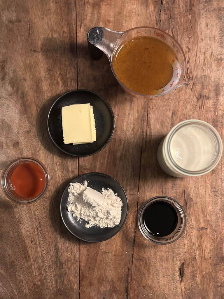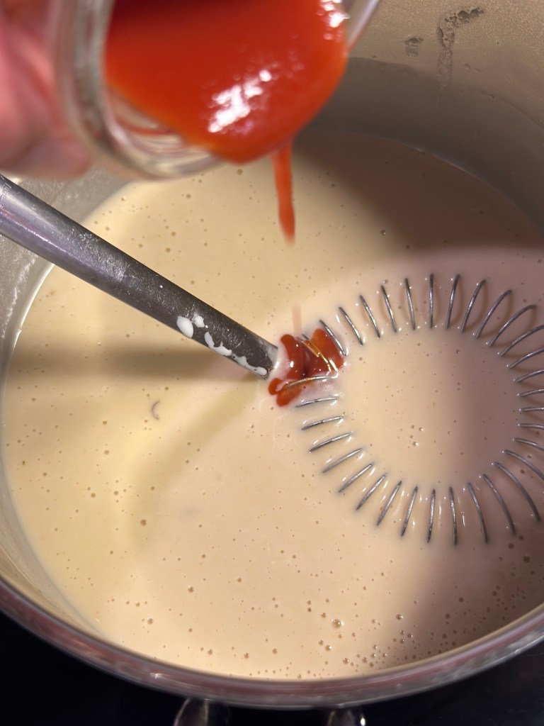 Sauce er en opbagt sovs, som starter med du smelter smørret ved svag varme. Herefter tilsætter du melet og pisker det sammen til en jævn cremet masse. Tilsæt fond og varm op – massen vil stivne, og samtidig med du pisker, tilsætter du fløden og varmer op igen. På dette tidspunkt har du din grund sauce som skal smages til. Tilsæt de øvrige ingredienser – og varm op (skal ikke koge). Sørg for at piske hele tiden. Tilsæt kulør efter smag, og saucen er færdig.