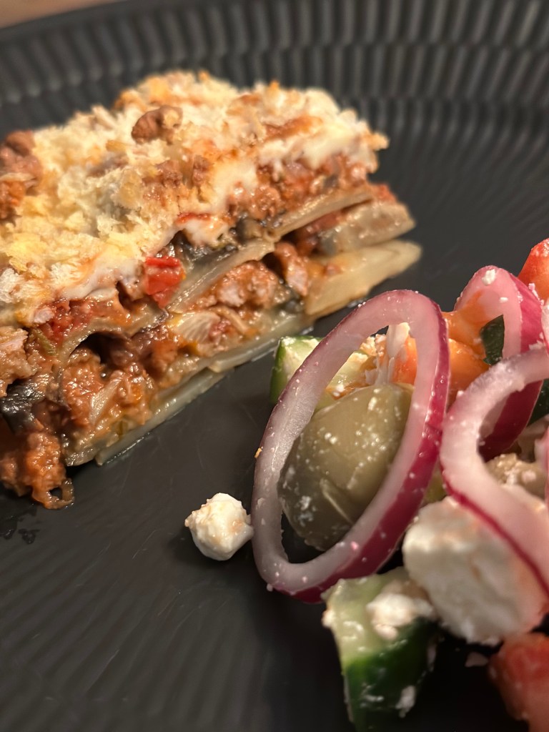 Moussaka eller bare Musaka er egentlig fra Bagdad i Irak, og stammer helt tilbage fra 1200 tallet, hvor den vandrede sammen med osmannerne til Grækenland. Det Osmanniske rige blev skabt af Osman den først i 1299 og var et sultan rige indtil første verdenskrig. Både Irak, Tyrkiet og Grækenland har været en del af det Osmanniske rige. Den centrale del af det Osmanniske rige, er i dag Tyrkiet, hvor Grækenland forlod Osmanniske i 1821. Moussaka findes i flere forskellige verioner, men aubergine er i alle helt centrale.