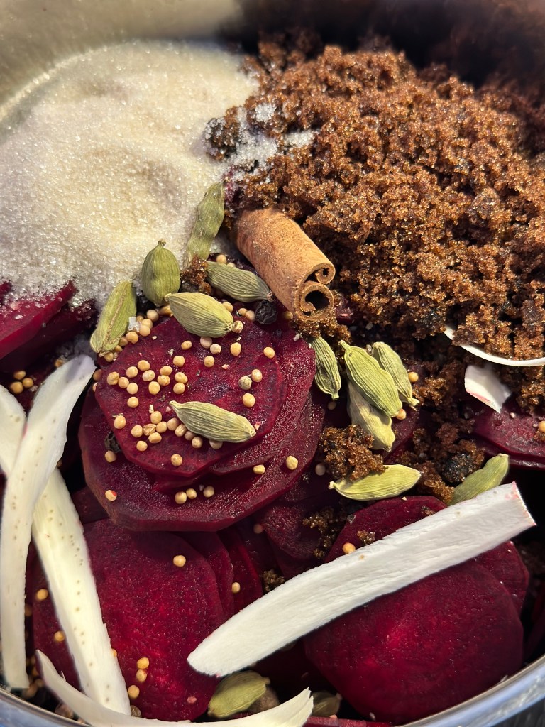 Det hele skal blot i en kasserolle, og koges i 20 minutter. Test løbende om rødbeden stadig har lidt bid. De må ikke være gennemkogte.