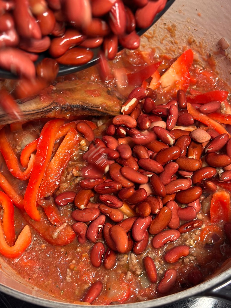 Jeg vælger røde kidney bønner, men jeg overdoserer ikke som, desværre er tilfældet med mange retter. Du kan tilsætte flere hvis du ønsker det.