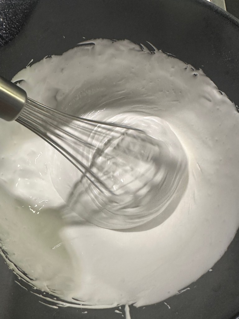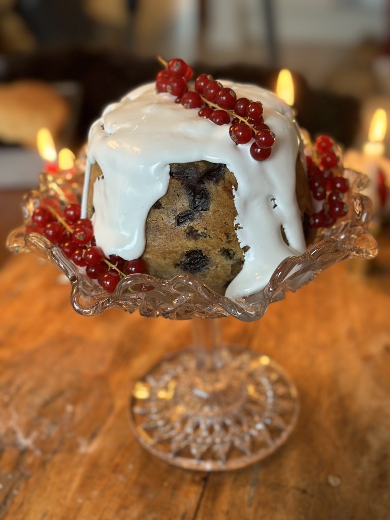 Jeg vælger dog, at servere den med glasur ovenpå, så det ligner et Snebjerg, og pynter med frisk ribs.
