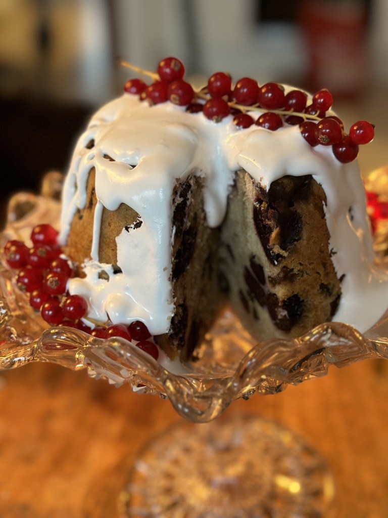 Selvom det er en “fluffy” kage, så klæder glasur og friske ribs både smag og udseende.