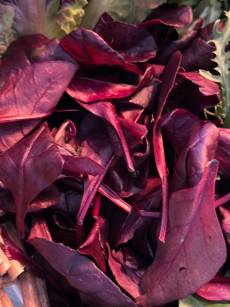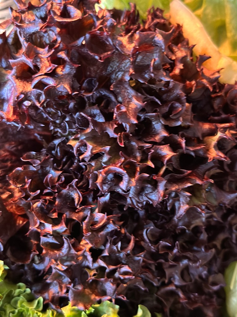Bulls Blood Salat har smalle, dybt røde eller lilla blade, der kan have en intens farve, som er flot i en salat. Bladene er ofte mere mørke end mange andre salatsorter.