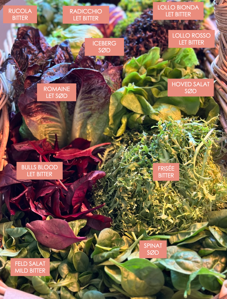 Jeg gennemgår alle salattyperne med dig, og giver dig viden om sundheden i dem, men også hvilke kategorismag de har, og hvad de vil passe godt sammen med.