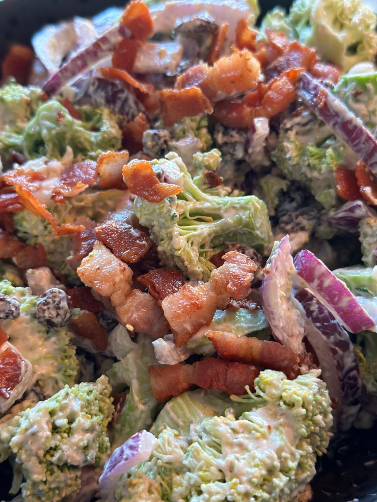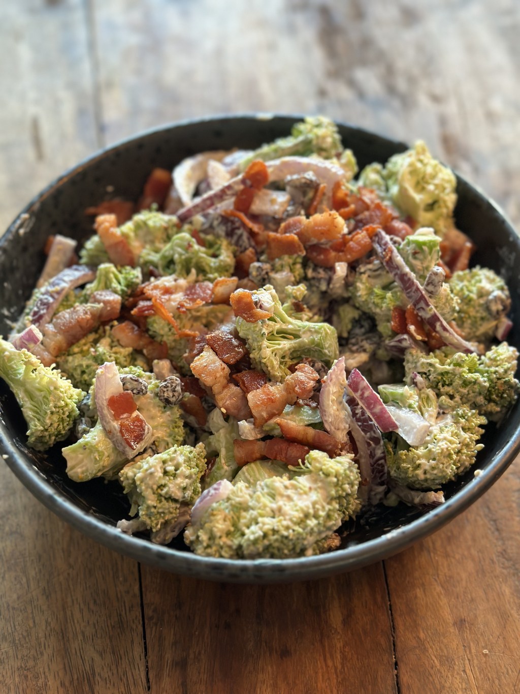 Hvordan får man broccoli til at smage godt ? Jeg har to metoder. Hvis den er kogt, så skal der bare rigelig med ketchup på, men skal den være rå, så er det denne klassiske salat.