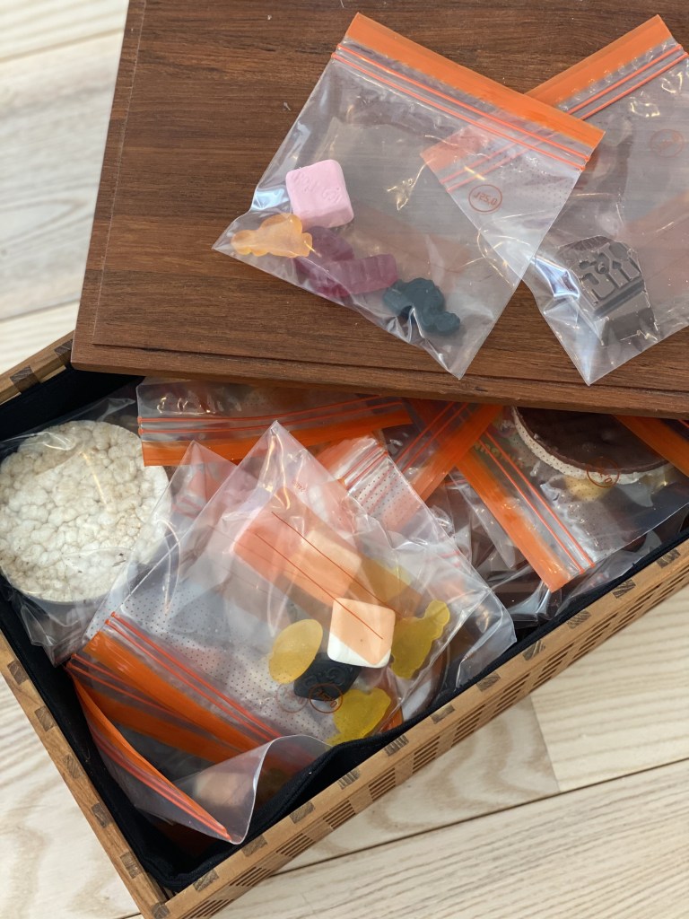 Når man følger mine vægttabs forløb, er der mulighed for at lægge 1-2 snacks pauser ind af hver 100 kalorier. Og for at sikre jeg ikke begynder at tømme hele poser, og derfor får for mange kalorier, så er dette en fin metode.