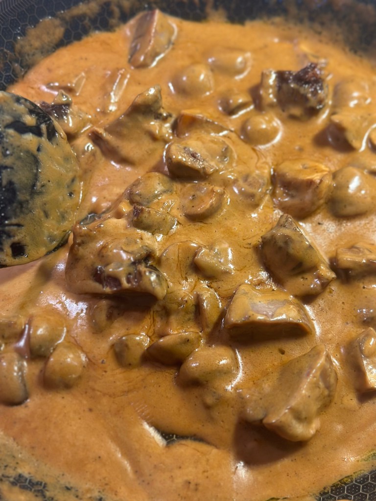 Jeg lavede en flødesauce på en bund af andefedtet, opbagt og smagt til med cognac.