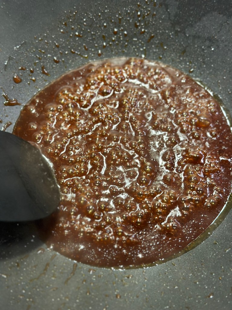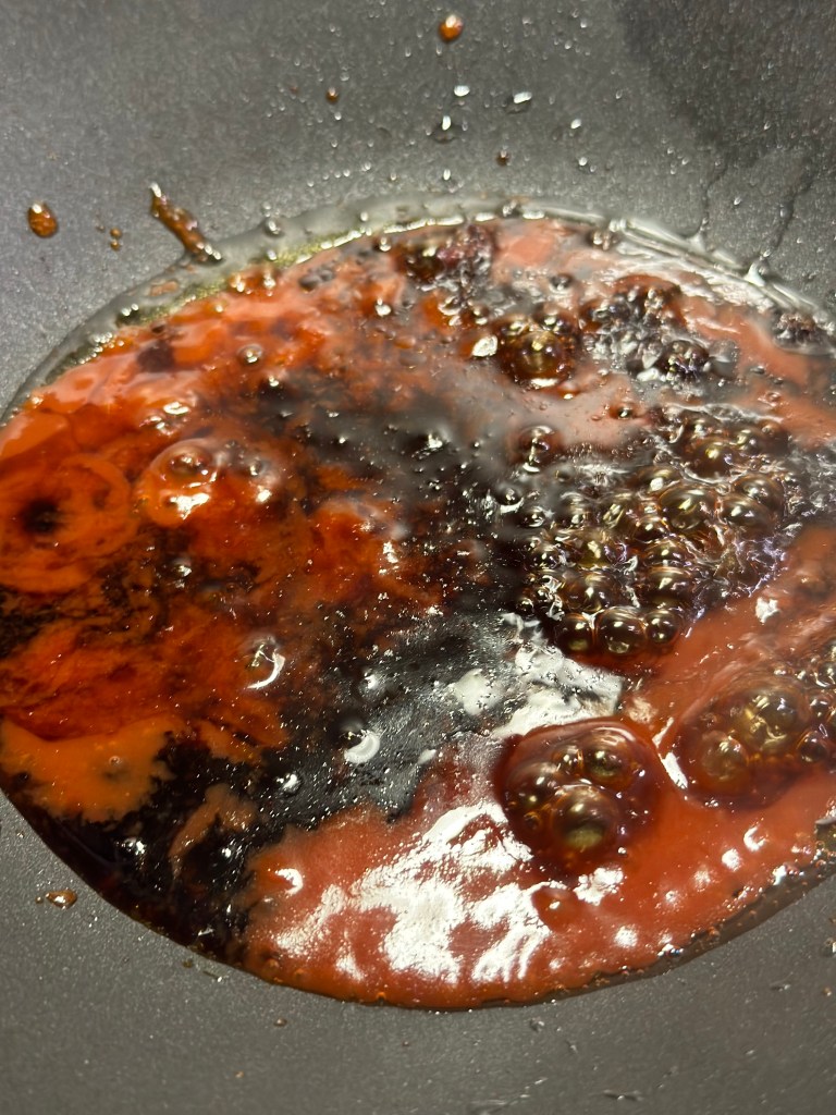 Varmes godt op, og lader smagene arbejde lidt ind i hinanden.