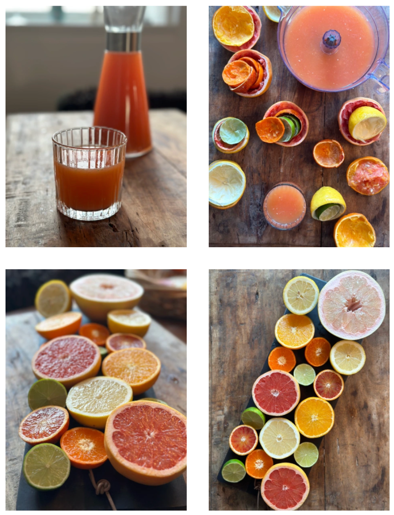 Denne drink er en Dyrvig Daily Essentiel, som er designet af mig selv. Den opstod da jeg skulle lave et nyt billede af citrusfrugter, og dermed stod med en masse overskåret citrusfrugter – Grape, Appelsiner, Lime, Citroner, Mandariner og og i alle versioner.