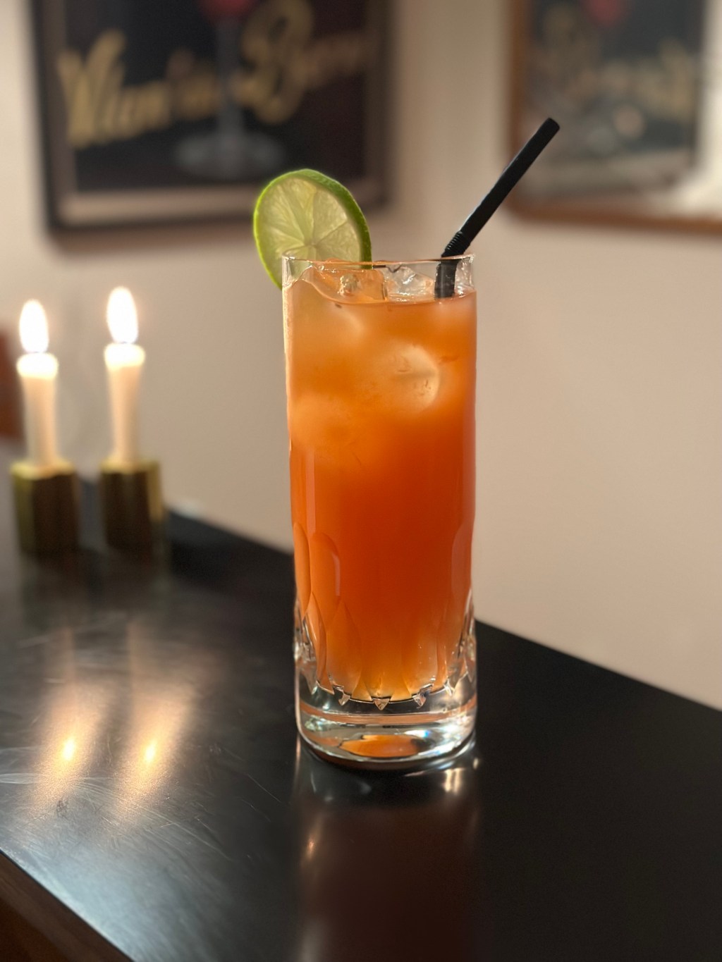 Drinken røres og pyntes med en lime.
